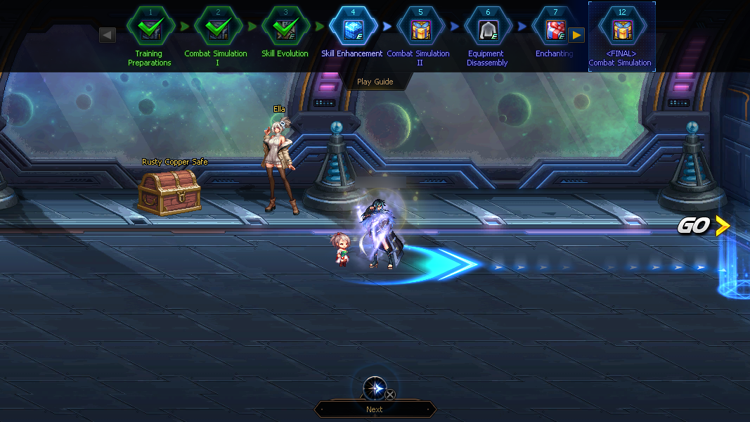 The character that used Starter Boost Capsule will be leveled up to Lv. 110 and will enter the Training Simulation mode. Character that has already reached level 110 will not level up further. Once all guide missions are completed, character can be moved to Seria’s Room.
