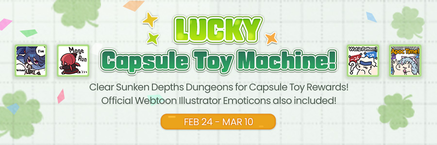 Clear Sunken Depths Optimal Level Dungeon or Advanced Dungeon 3 times and earn a chance to get capsules!