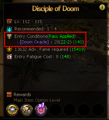 Reduced number of required entry materials for the Disciple of Doom dungeon. (Stacks with Neo Premium Plus Contract benefits!) |