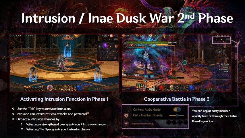 Also, in order to quickly help out other players and parties spread across the regions, the Inae Dusk War Raid also introduces a special mechanic known as Intrusion.
