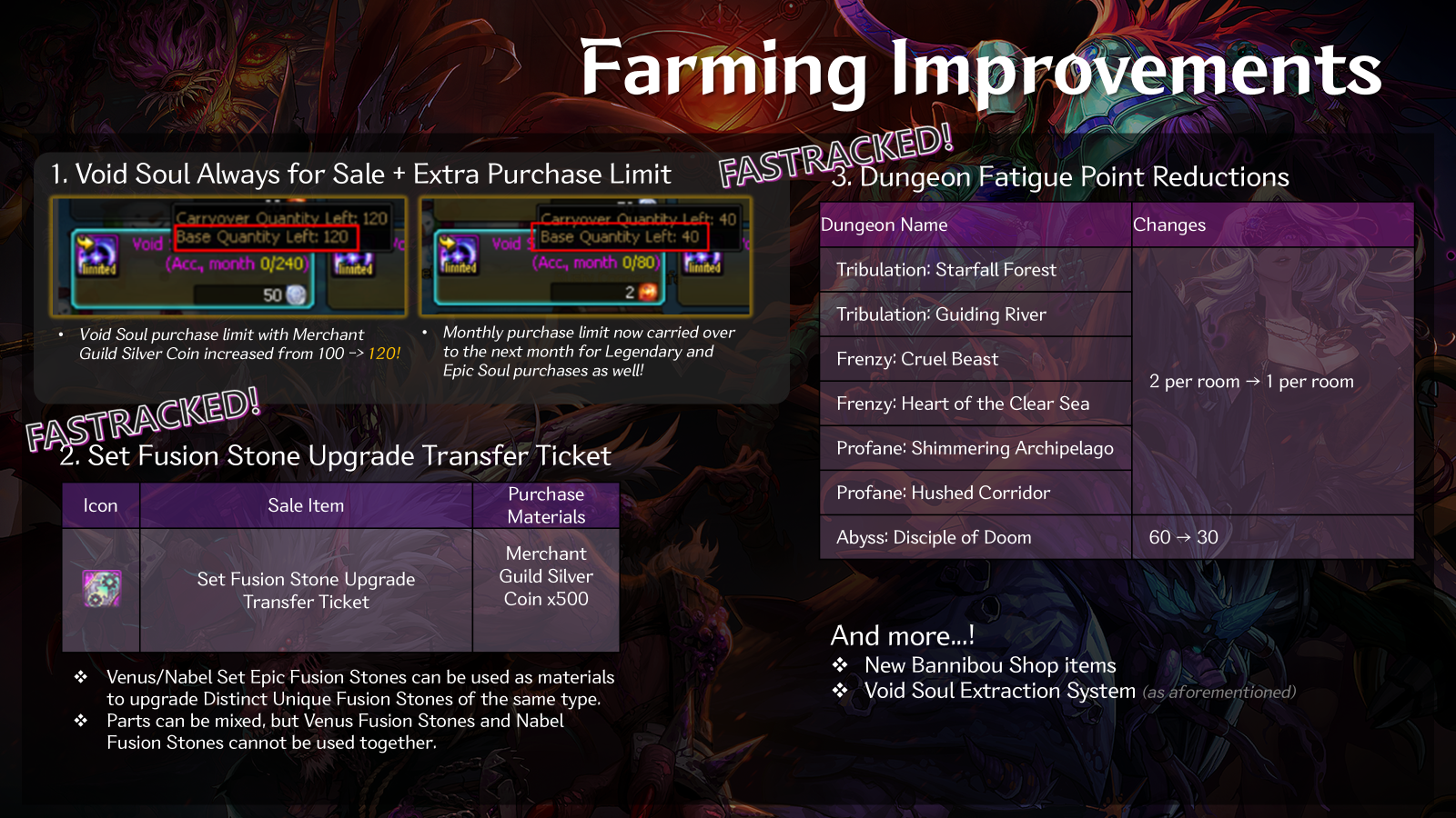 Along with Inae Dusk War rewards and the Verge of Doom acting as new ways to help out with your farming, we will also be introducing improvements to previous farming routes.