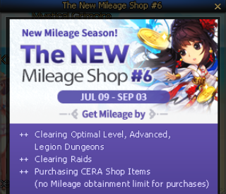 Up to 50 points can be earned through the methods above daily, and this limit is reset daily at 09:00 UTC. Mileage is also given for purchasing items in the CERA Shop. |