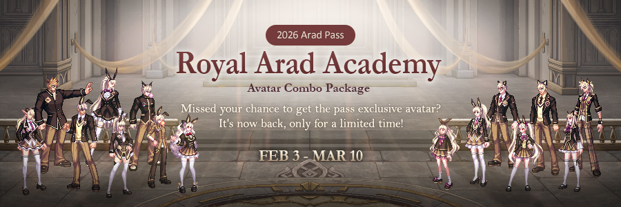 2026 Arad Pass Royal Arad Academy Bonus Box Contains the following: The obtained items are account-bound and, if unused, will be deleted at 09:00, MAR 24, 2026 UTC. |