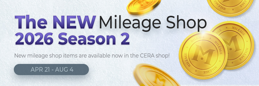 Up to 50 points can be earned through the methods above daily, and this limit is reset daily at 09:00 UTC. Mileage is also given for purchasing items in the CERA Shop. |