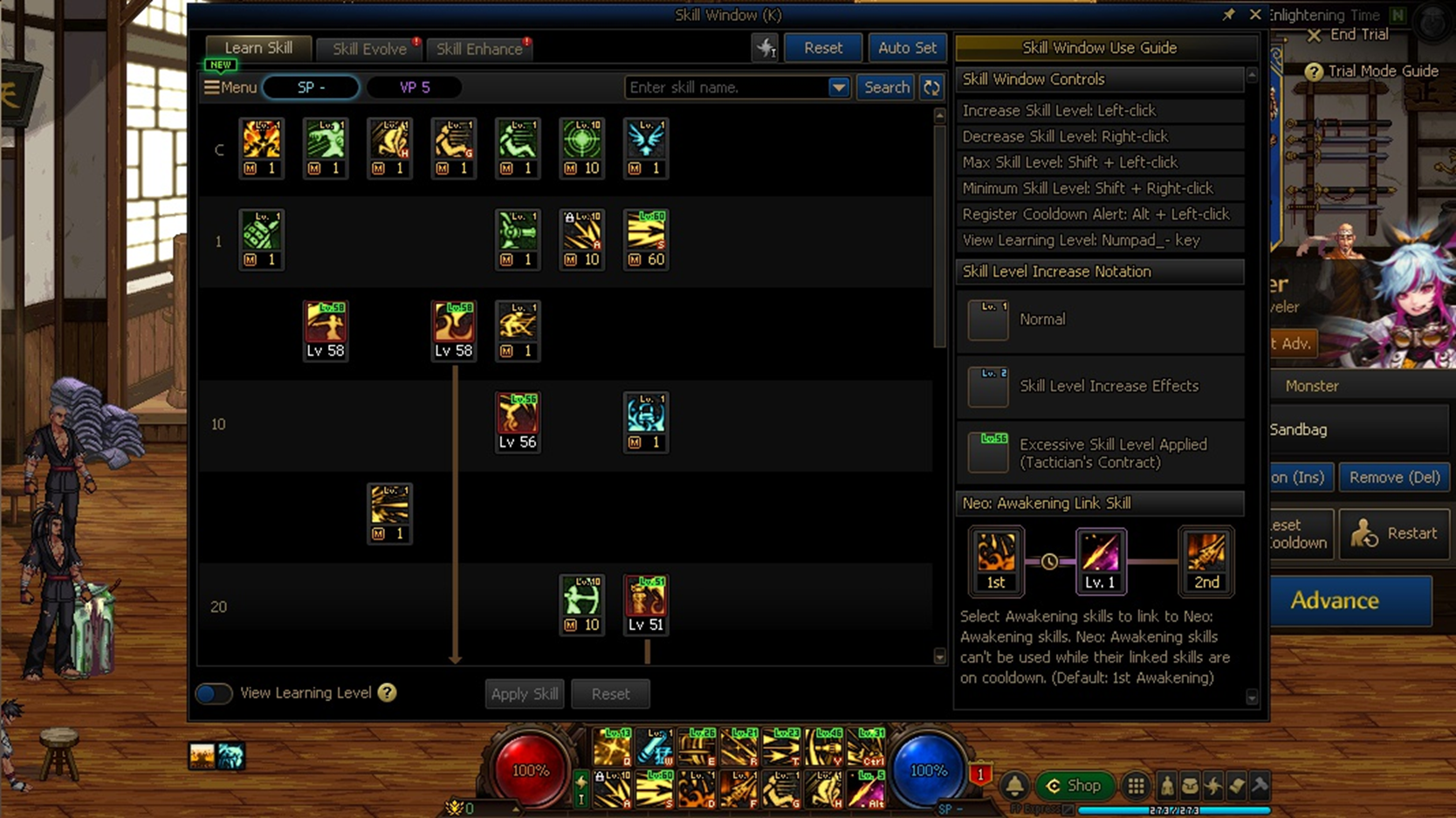 - NPC Pungjin will activate the [Skill Evolution/Enhancement Guide] when you reach Level 100.