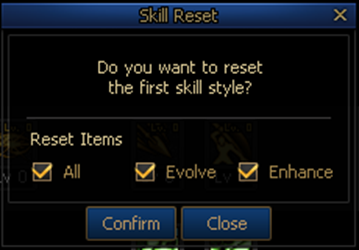 A pop-up window will be provided to guide you in using Skill Evolution/Skill Enhancement.