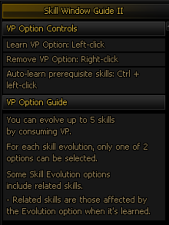 - You can check the tooltip for the currently selected Skill Evolution option.