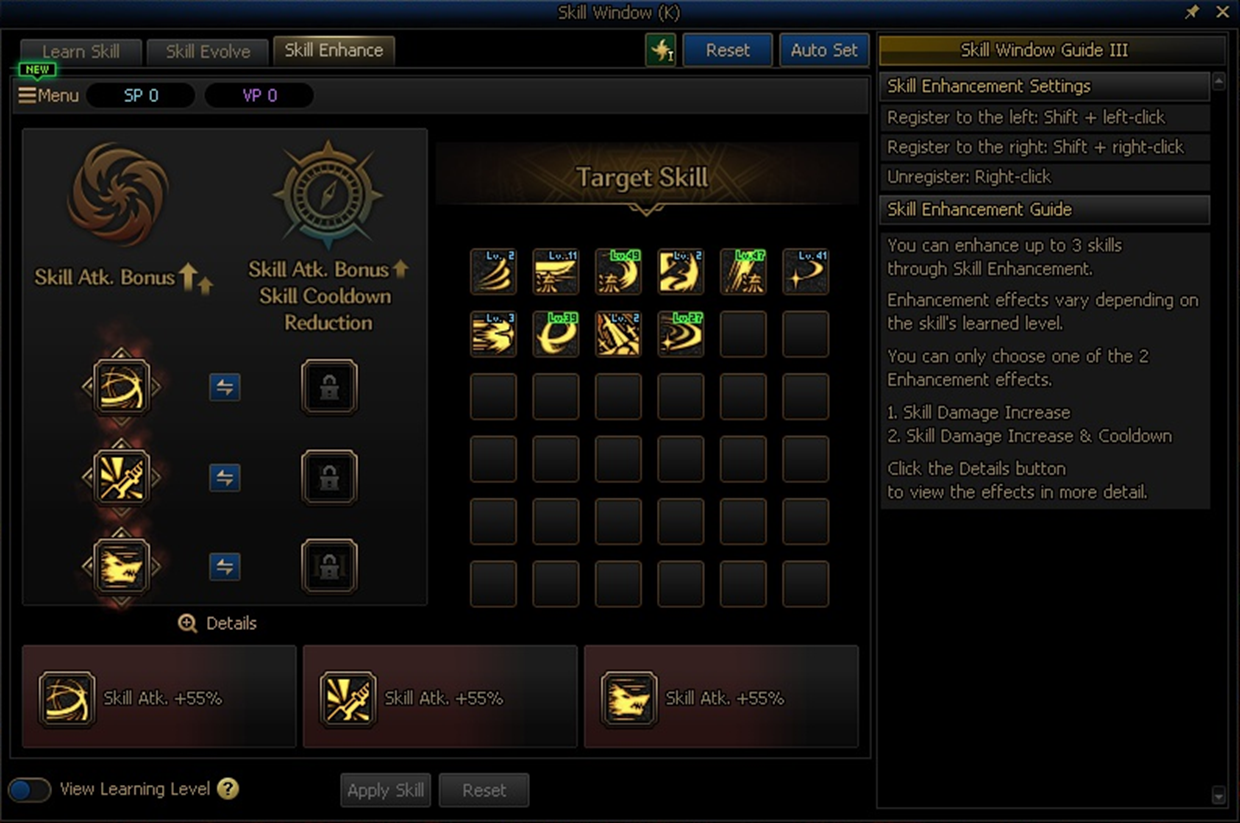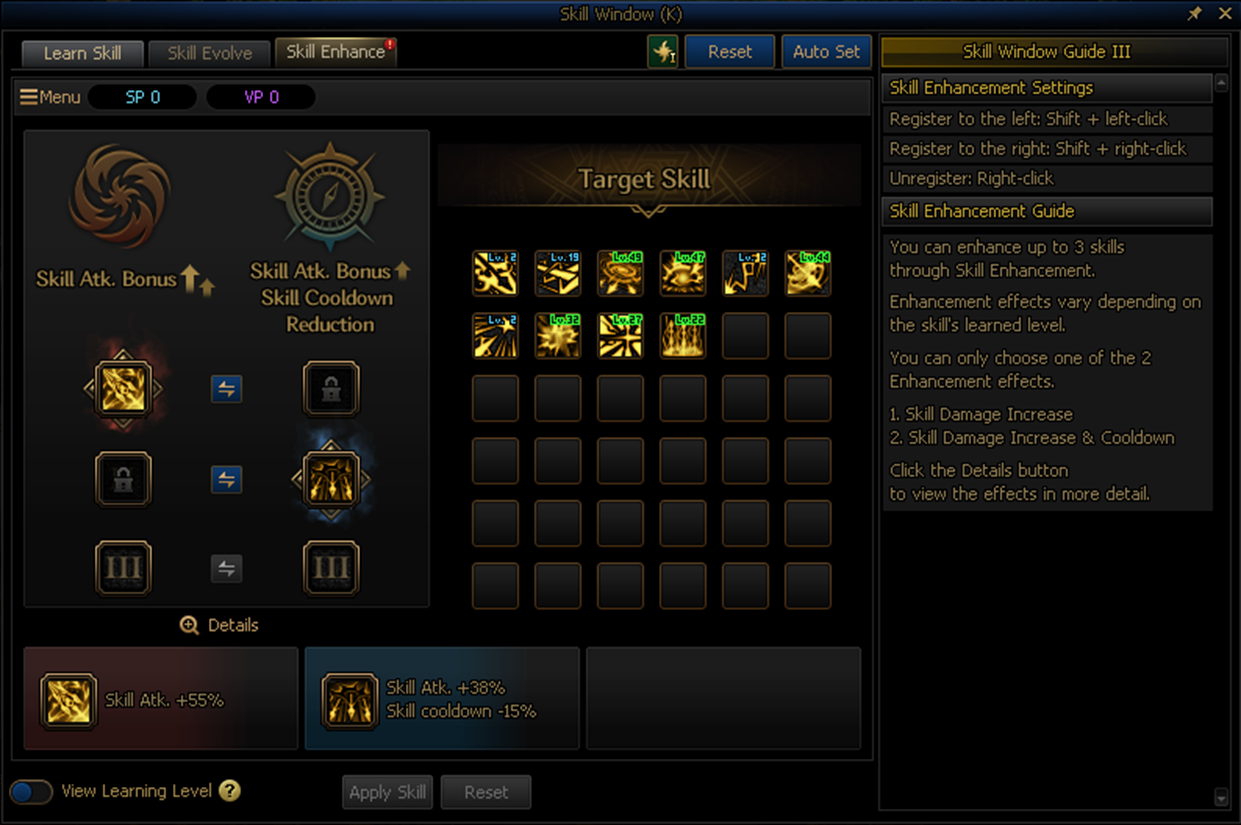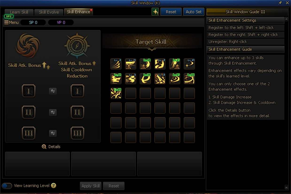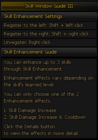 - Select the "Skill Enhance" tab in the Skill window to use.