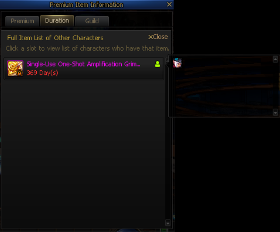 * The Temporary Item Info window will remain open upon switching characters.