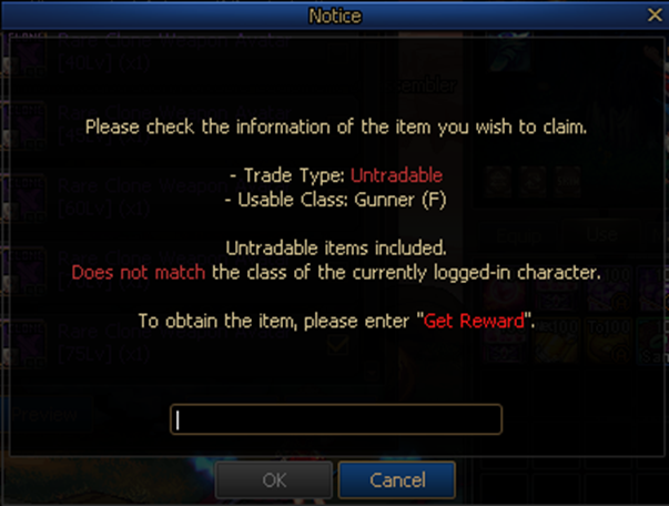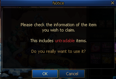 - Changed the content of the pop-up alert window that appears when Untradable items have appeared from a reward box.