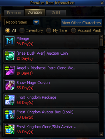 - You can now view temporary items held by characters that are not currently logged in.