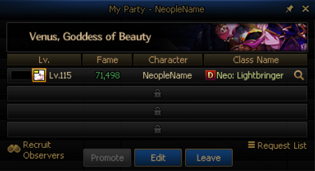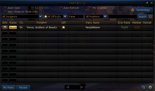 * The View Observable Parties Only option will be added to the [Venus, Goddess of Beauty] Find Party pop-up window.