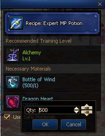 - Increased the maximum number of items craftable per Profession from 100 to 500.