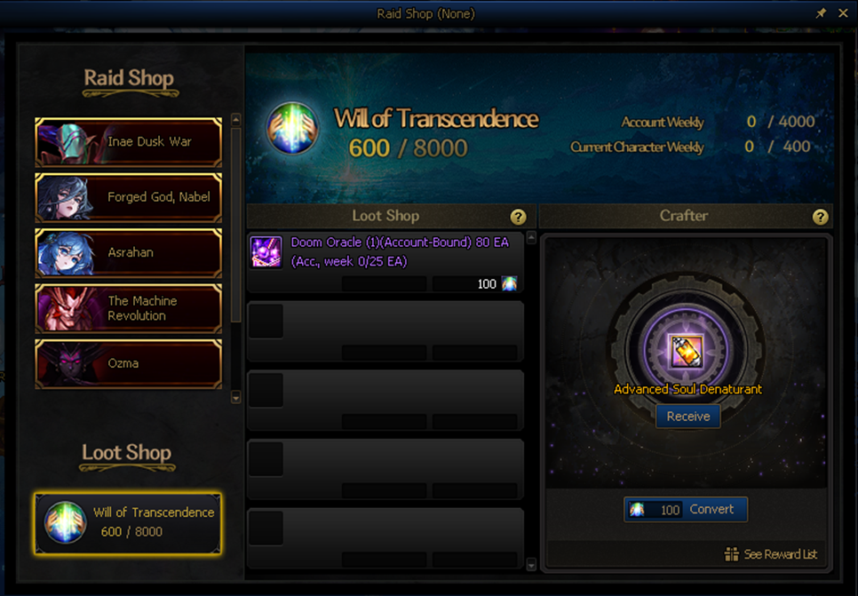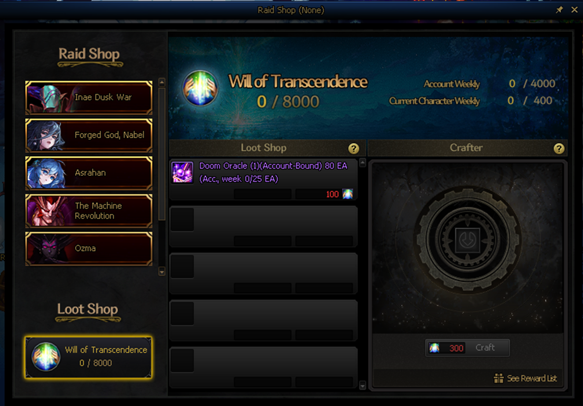 Will of Transcendence Loot Shop will be added to the Raid Shop.