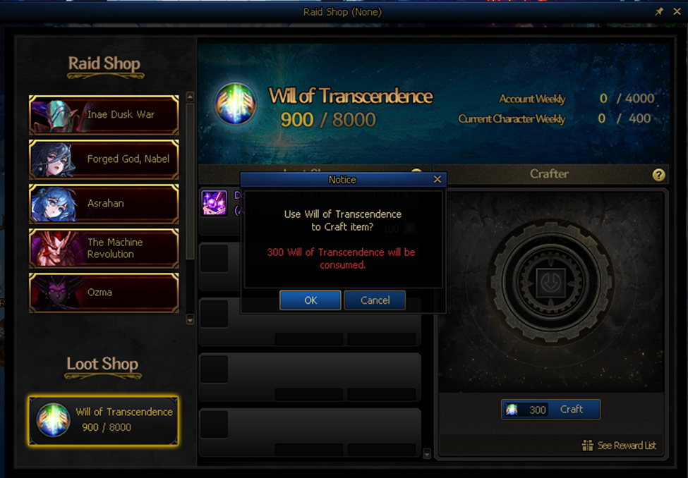 The Crafter System will been added to the Will of Transcendence Loot Shop.