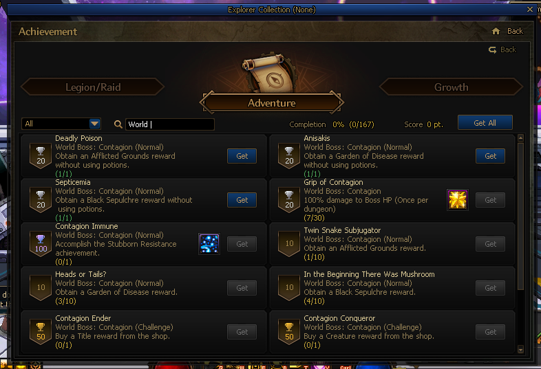 The [World Boss: Contagion] achievements will be added to the Adventure tab.