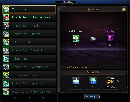 If you reset the tuning of tuned equipment, or destroy it by converting, disassembling, extracting, reinforcing, or amplifying it, then the Darkblight spent on its tuning progress will be refunded.
